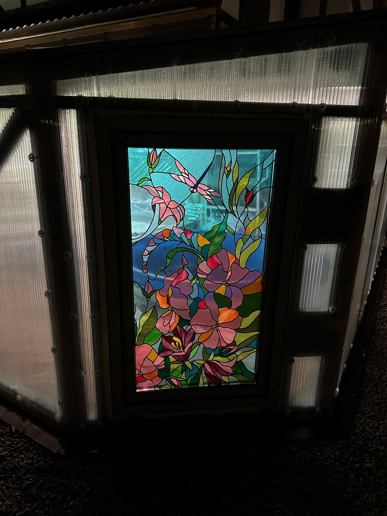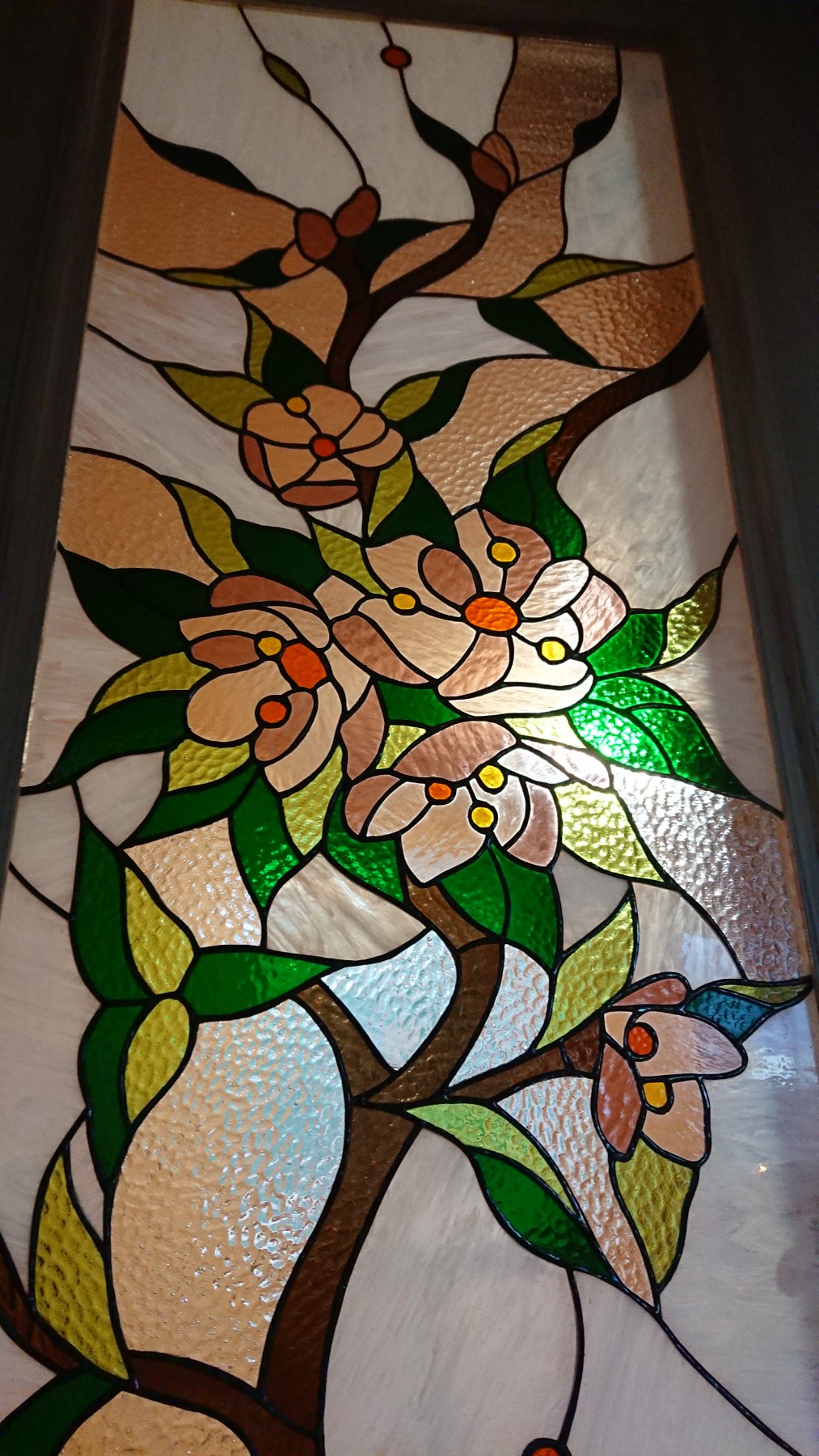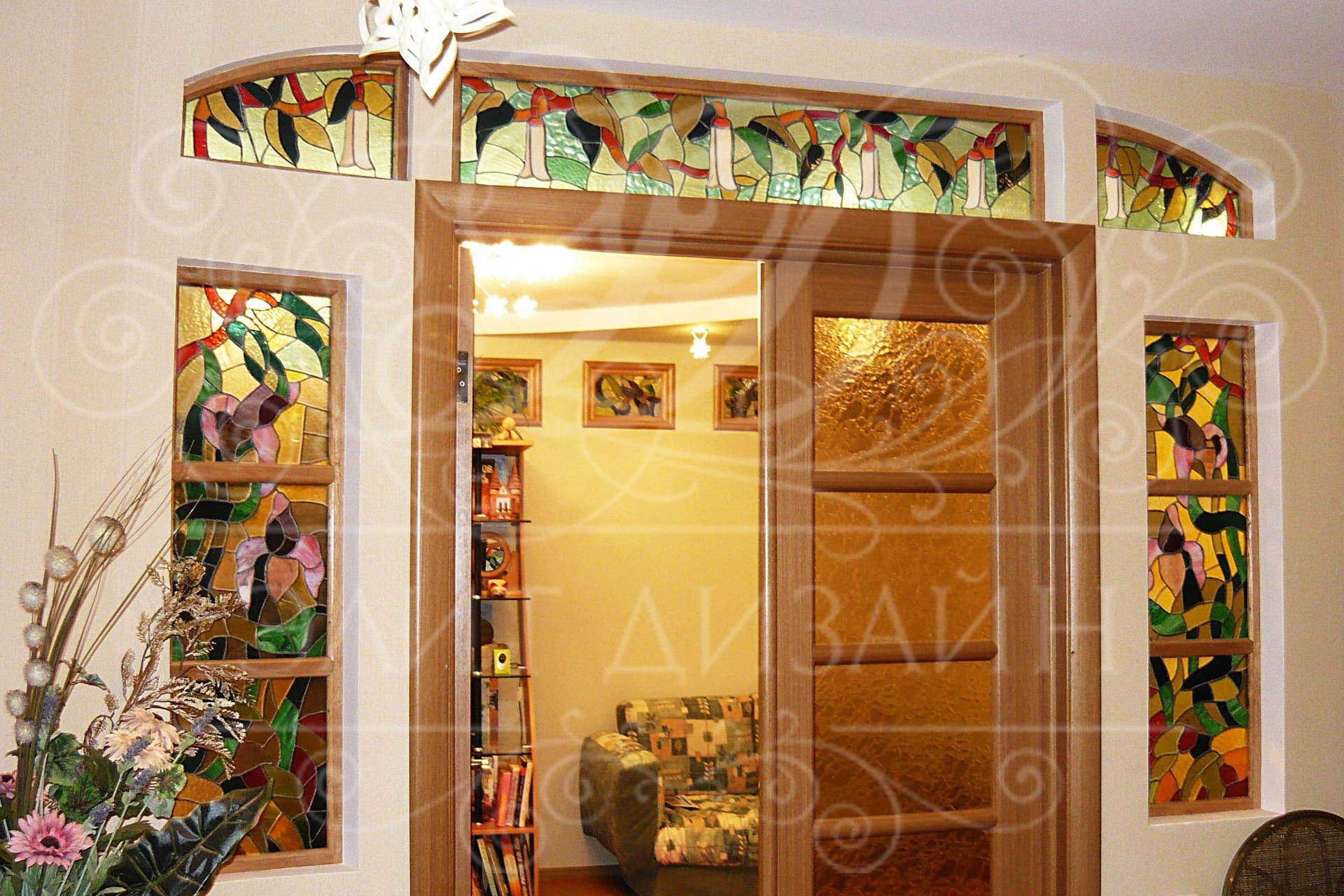 Витраж Тиффани в стеклопакете дверном.Цветочная абстракция.